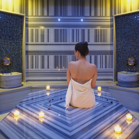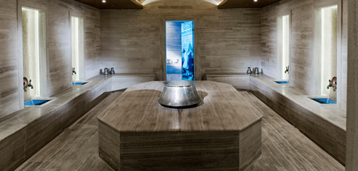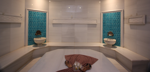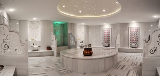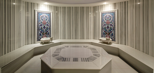 Turkish Hammam, saunas, steam room, ice fountain, adventure showers and suite hammams of spa area of D-Hotel Maris located at Datça Peninsula - Hisarönü on a land of 156.000 m2, are implemented by Promet.