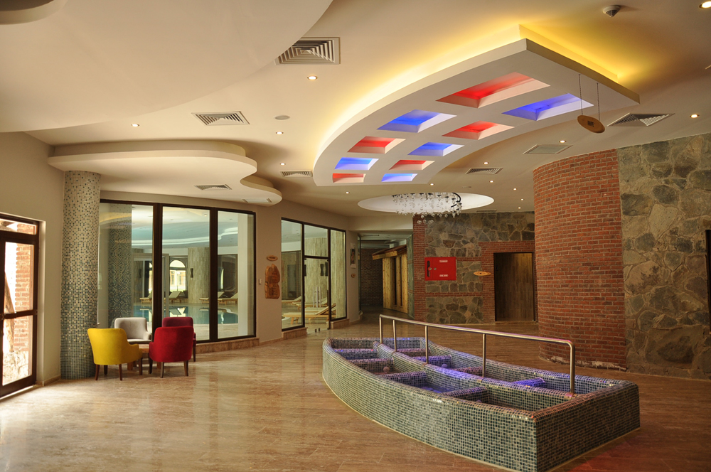 Gazelle Resort & SPA opened in Bolu in a forest with an area of 150 decares is among the most extensive spas of Turkey and Europe. In this project, Promet achieved firsts which were not applied in Turkey before. Massage and care unit, VIP massage room, couple massage room, rasul - mud therapy, fitness center, indoor and outdoor pools, Turkish hammams, Russian sauna, Bio sauna, Rose sauna (Special for ladies), Herbal bath, Crystal sauna, Snail showers, Laconium aromatherapy steam room, Kneipp - foot therapy, shock pool, salt, hay and sand therapy rooms, ice room, adventure shower grotto, relaxation room with water beds, relaxation room with heated stone beds, heated benches, special family baths, thermal pool, Jacuzzi, Spa Lounge implementations were realized by Promet.