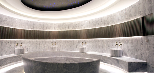 Şehir Spalarında alışkın olmadığımız jakuzi alanları ve dış mekan Spaları bu tasarımımızda da mevcuttur. Buna ek olarak İstanbul’un tarihi hamamları ile aynı ölçeği paylaşan, tasarımı ve 6 metrelik özel tavan konstrüksiyonu ile göz dolduran özel bir hamam projesine imza atmış bulunuyoruz. Spa hizmeti de sunan konaklama odaları ve içlerinde hamam, sauna olan çok farklı özellikte otel odaları bulunması da bu projeye özellik ve değer katmıştır.